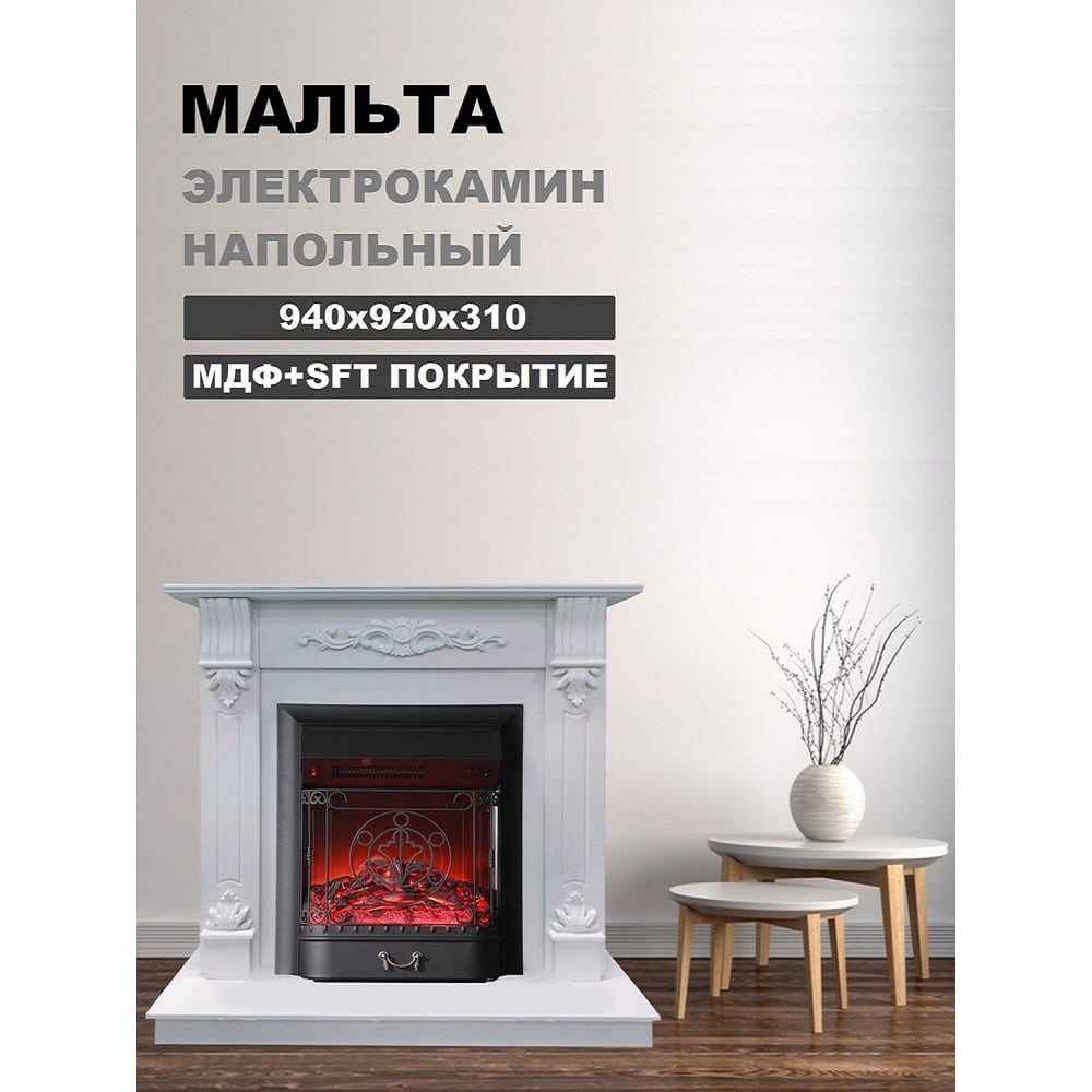 Каминокомплект InterFlame Мальта разборный Фобос Bl Fobos Bl белый