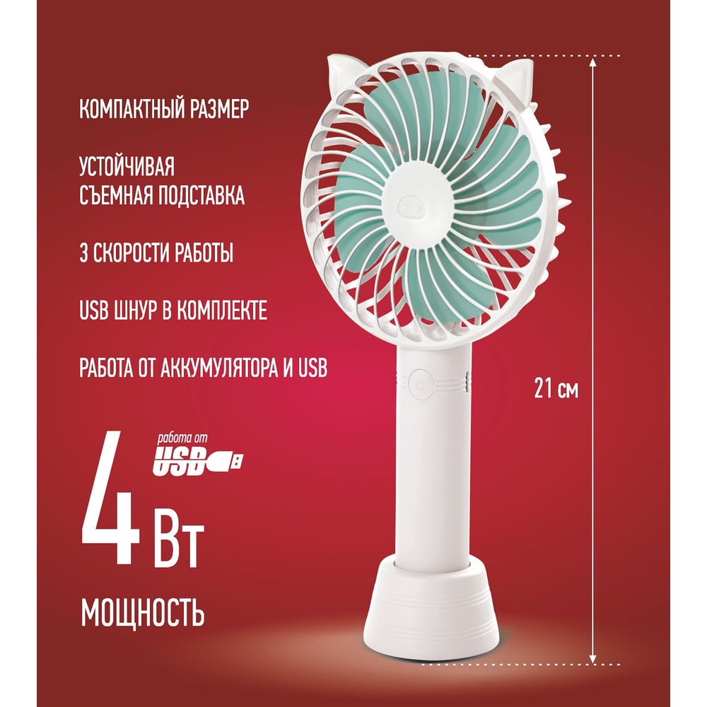 Вентилятор ENERGY EN-0610 USB (настольный, аккумулятор) белый 103932