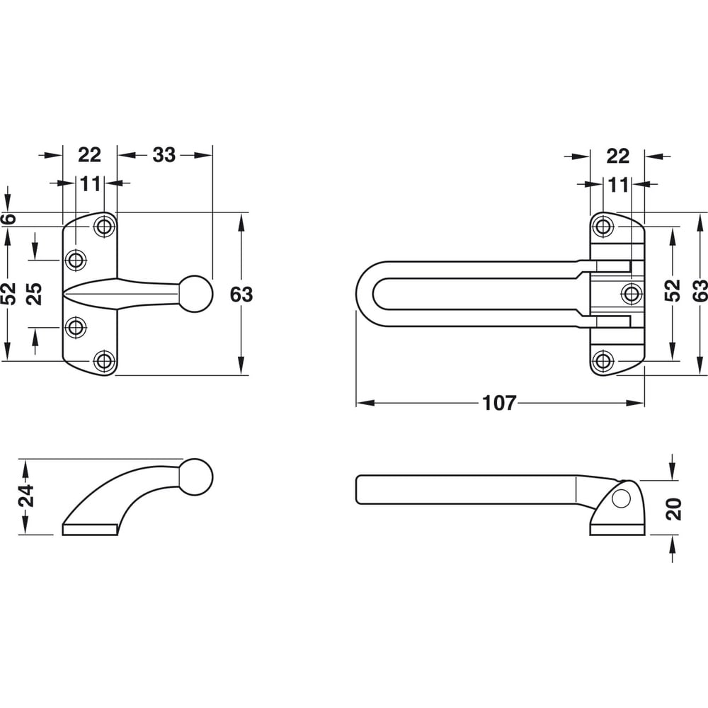 Стопор с защелкой Hafele для двери Startec, цинк, хром 911.59.187