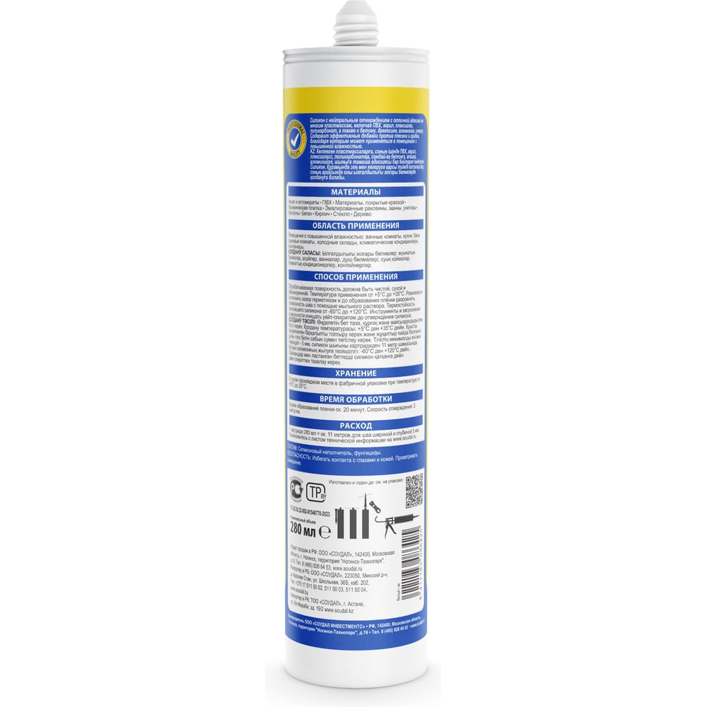 Нейтральный санитарный силикон SOUDAL белый 118312