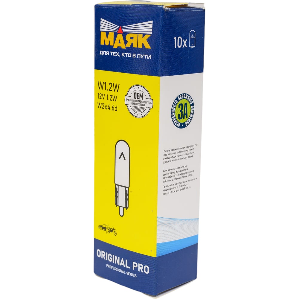 Автомобильная лампа накаливания МАЯК W1.2W 12V, 1.2W W2x4.6D, Original Pro, уп-ка 10 шт. 01212Бц/10