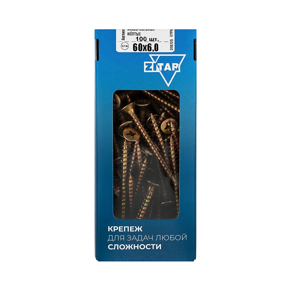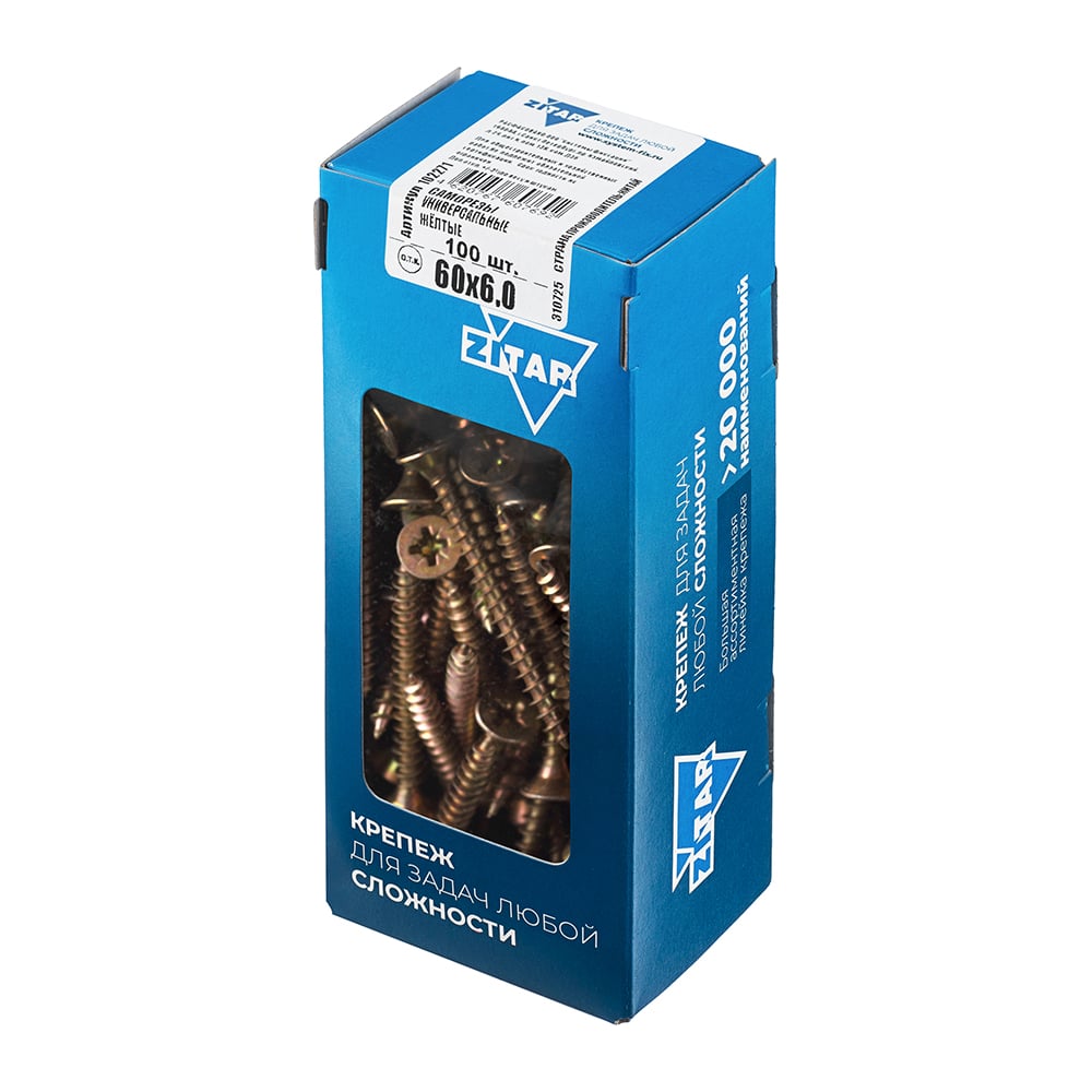 Универсальные саморезы 60x6,0 мм 100 шт желтые коробка с окном Zitar 102271