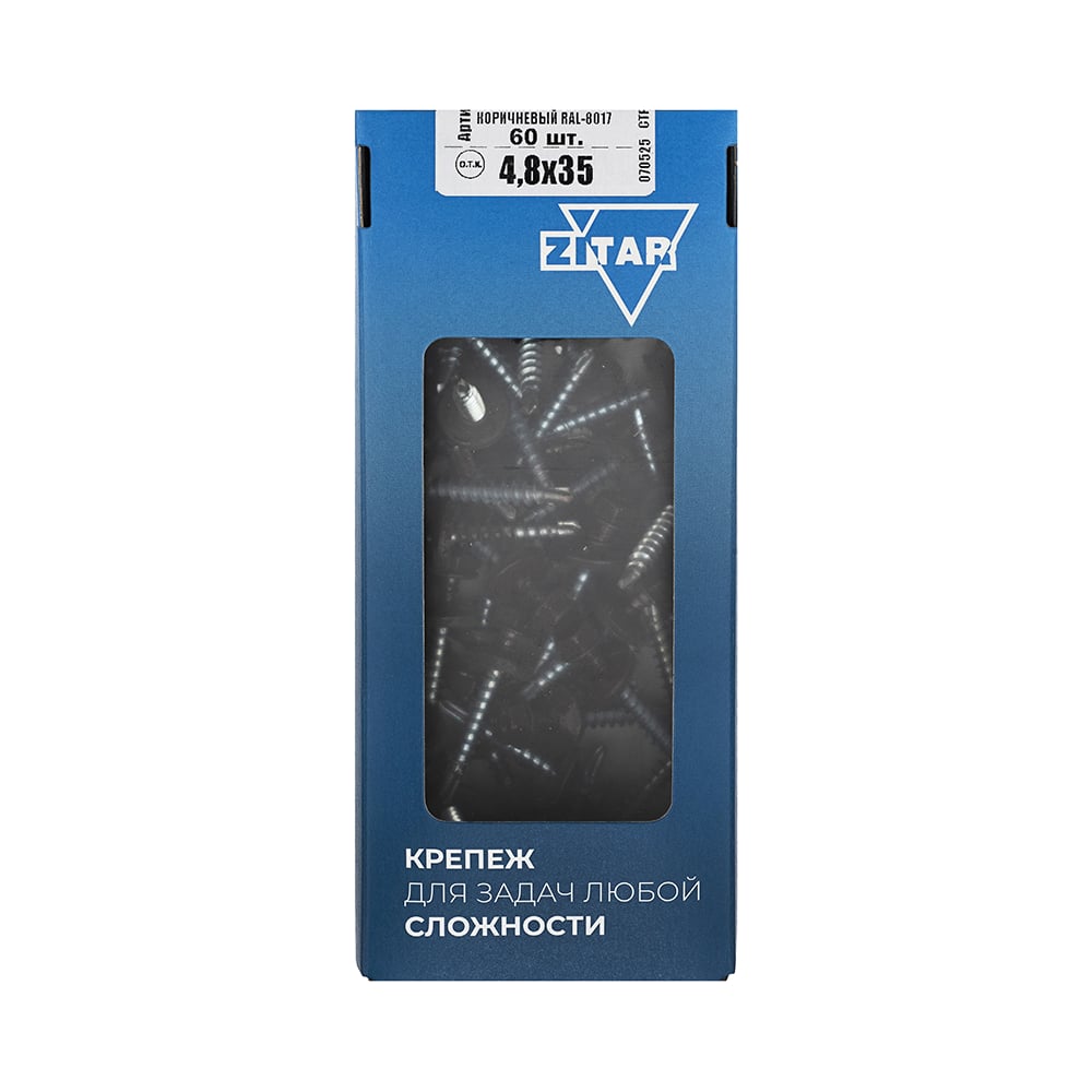 Саморез КР со сверлом, 4,8x35 мм, RAL-8017 шоколадно-коричневый, 60 шт. в коробке с окном Zitar 112034