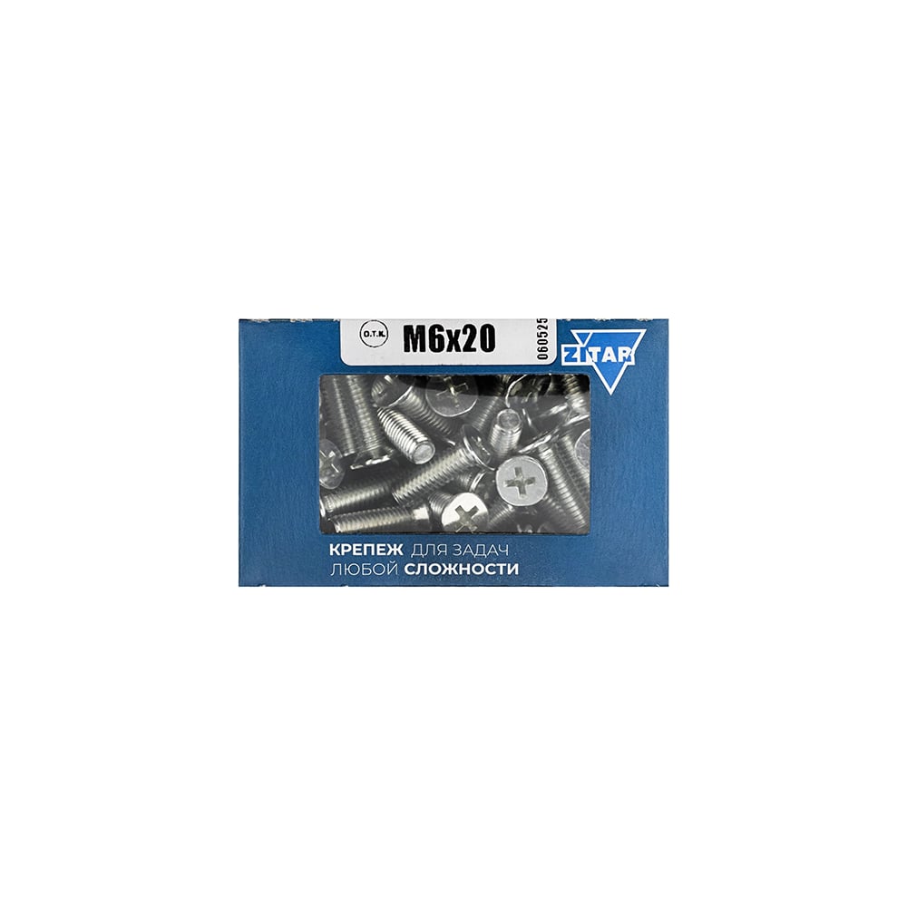 Винт DIN965 с потайной головкой оцинкованный М6x20 мм, 100 шт, коробка с окном Zitar 105241