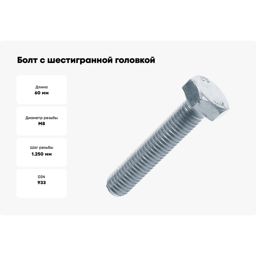 Болт с шестигранной головкой Промрукав оцинкованный, М8x60 мм, DIN 933, 50 шт. PR08.2357