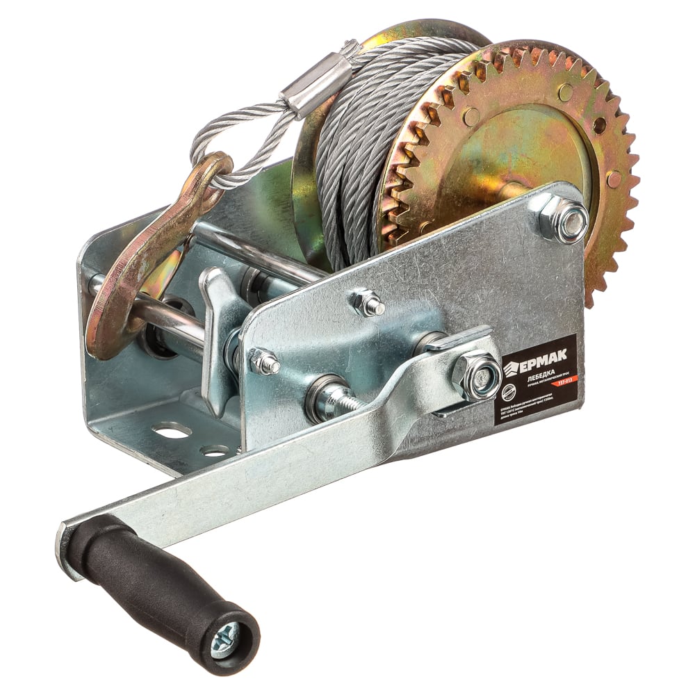 Ручная шестеренчатая лебедка ЕРМАК TRT 1301C металлический трос, 1350кг, длина троса 10м 737-013