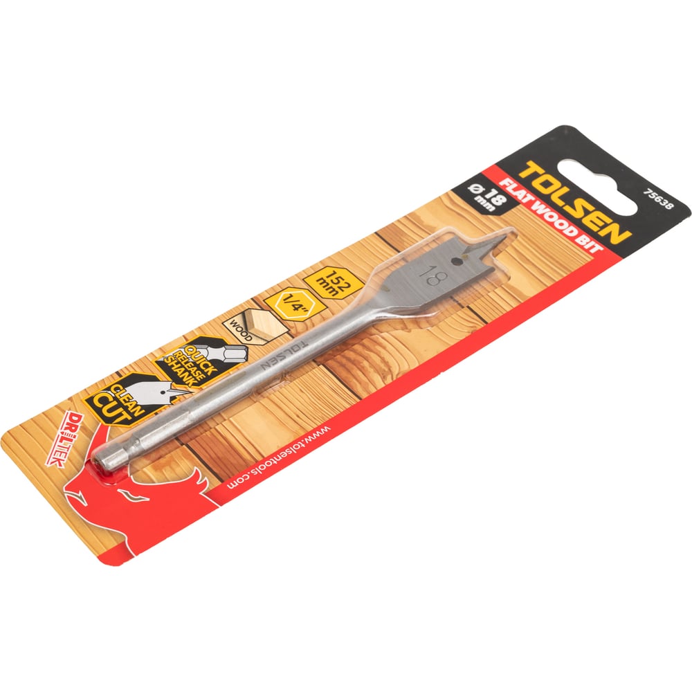 Сверло по дереву перьевое 18х152 мм, 1/4'' TOLSEN 75638