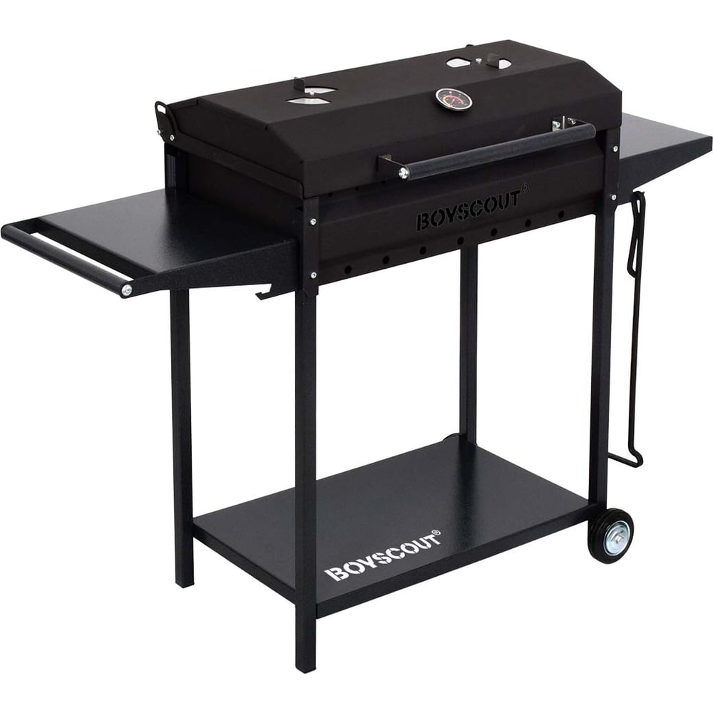 Мангал-гриль BOYSCOUT 1220x490x900 мм, с 2-мя столиками, крышкой, термометром, дровницей и кочергой на колесах 61616