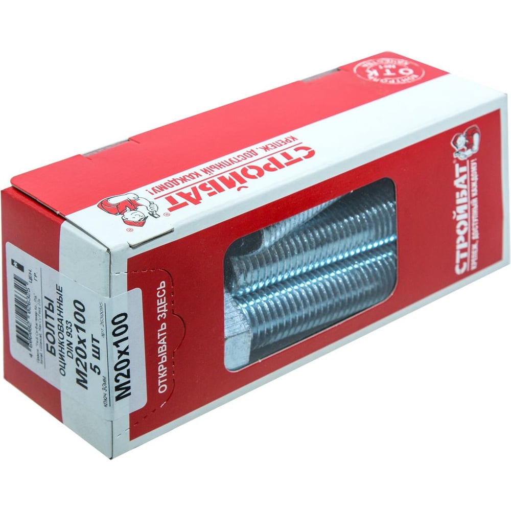 Болт Стройбат DIN933 М20x100 белый цинк 5 шт 272721