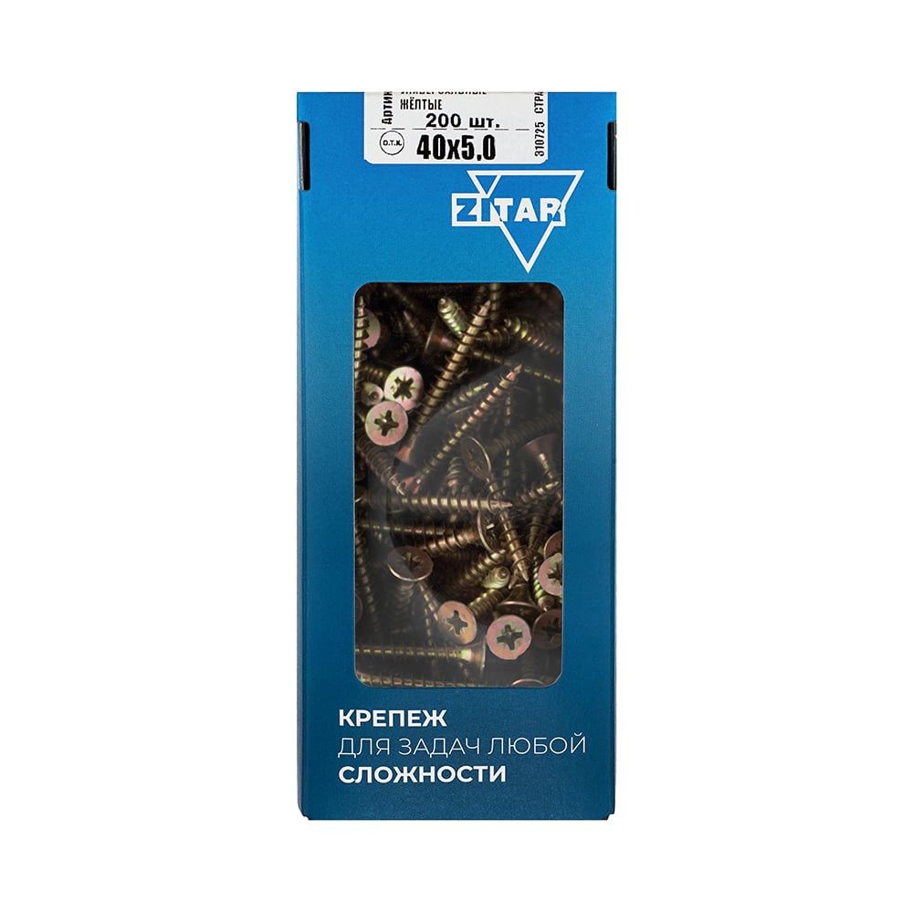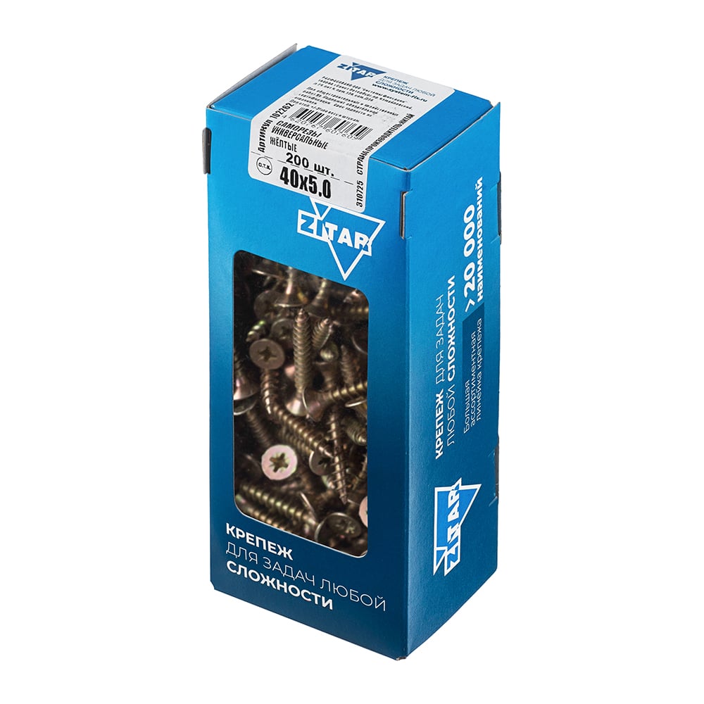Универсальные саморезы 40x5,0 мм 200 шт желтые коробка с окном Zitar 102262