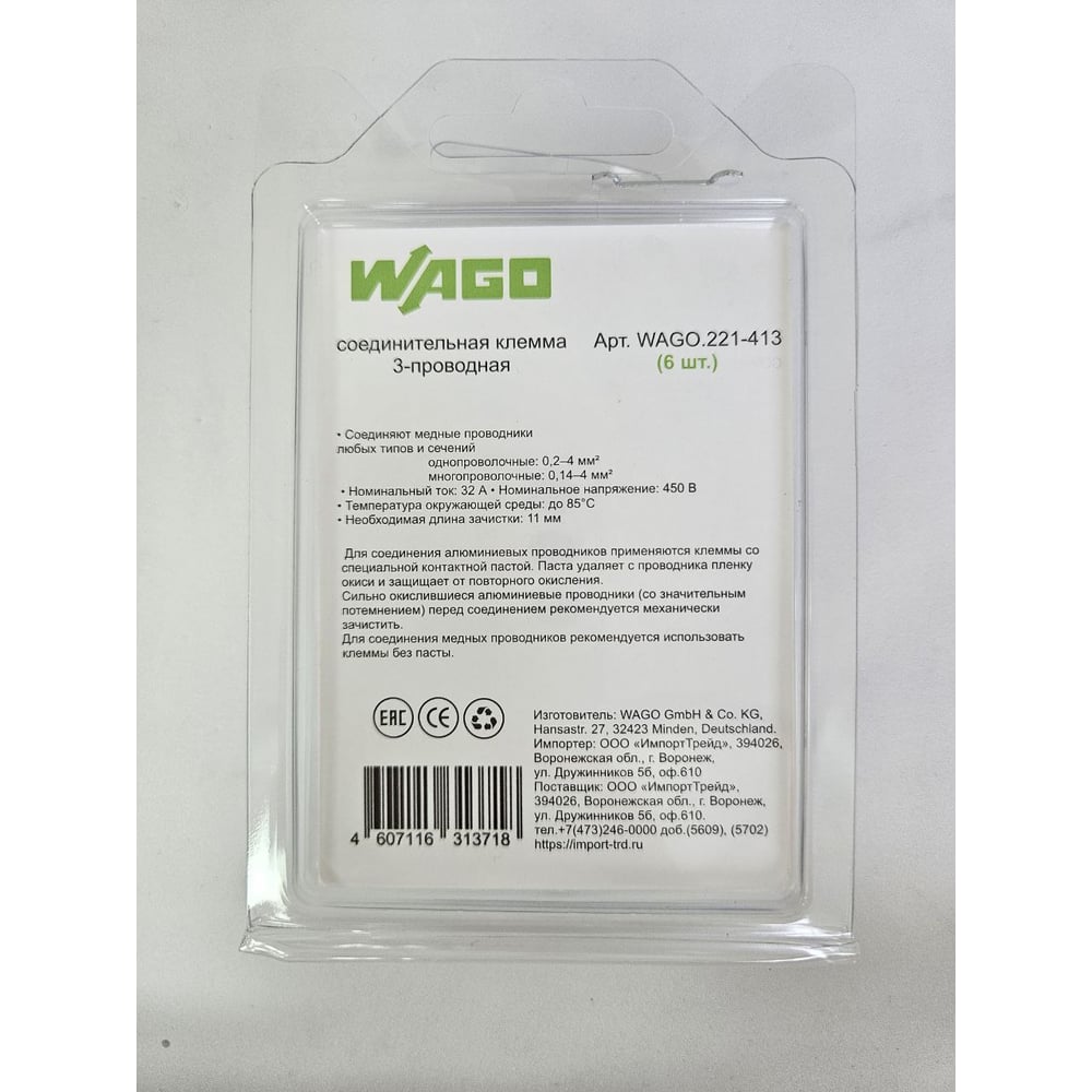 | Количество зажимаемых проводов | 3 шт |