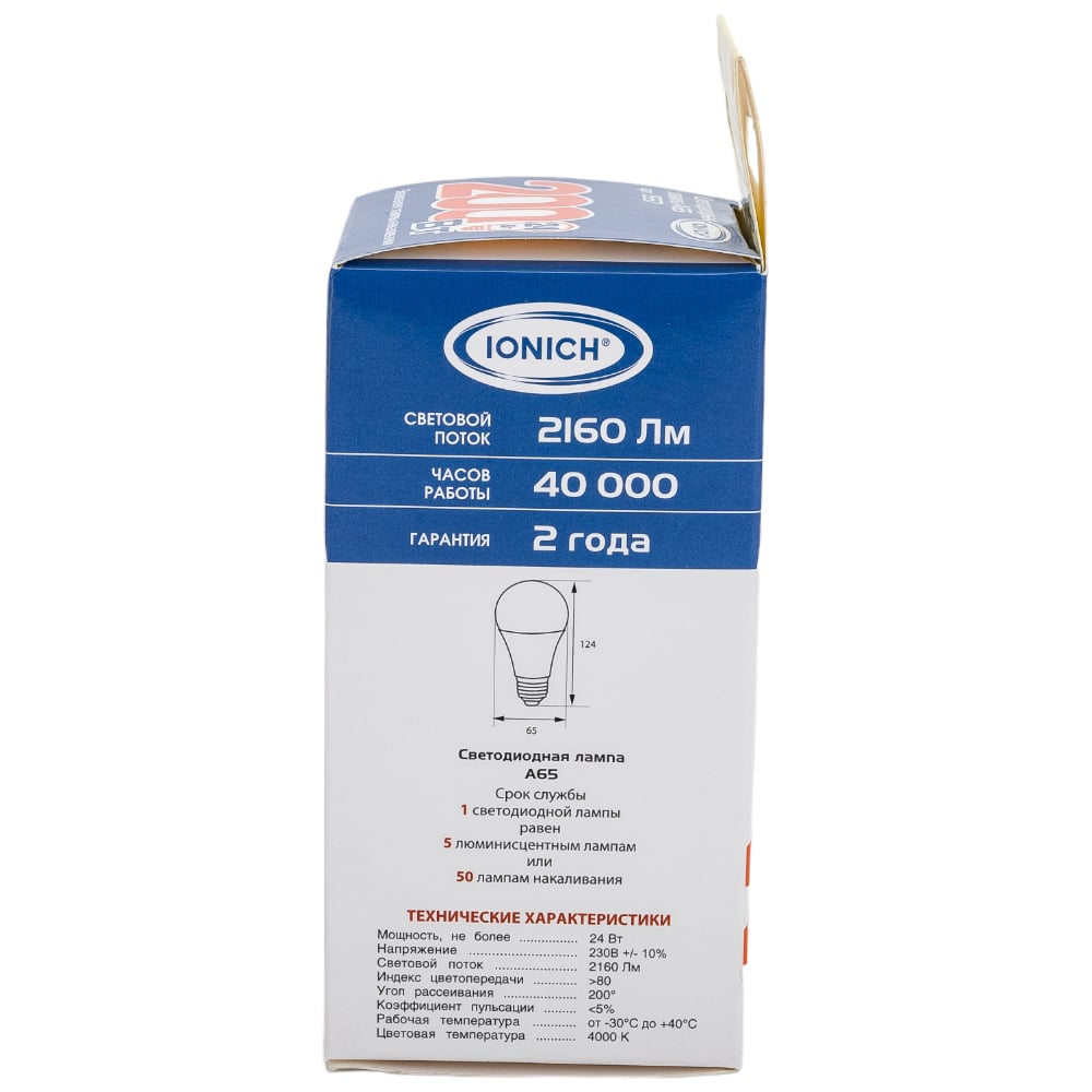 | Эквивалент лампы накаливания | 200 Вт |