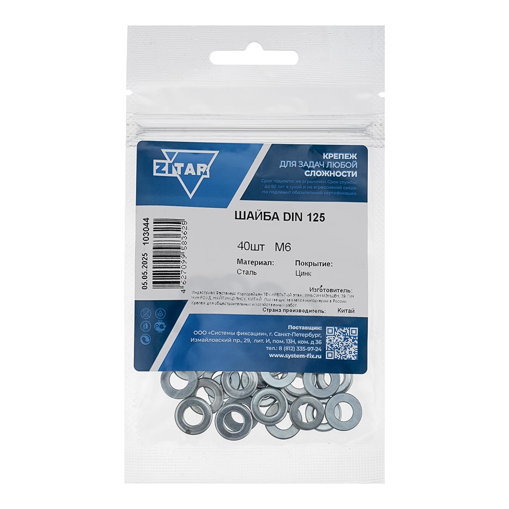 Шайба DIN125а плоская оцинкованный М6 40 шт Zitar 103044