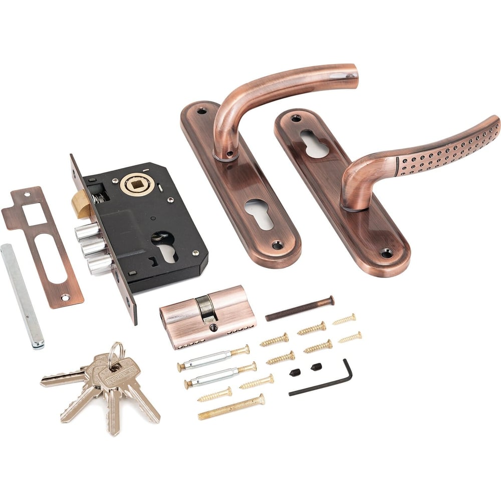 Врезной замок с ручками Аллюр 132/3-61А1232 AC старая медь 6805