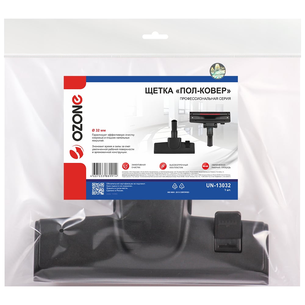 Насадка высокоэффективная "пол-ковер" для профессионального пылесоса (1 шт.; под трубки 32 мм) OZONE UN-13032