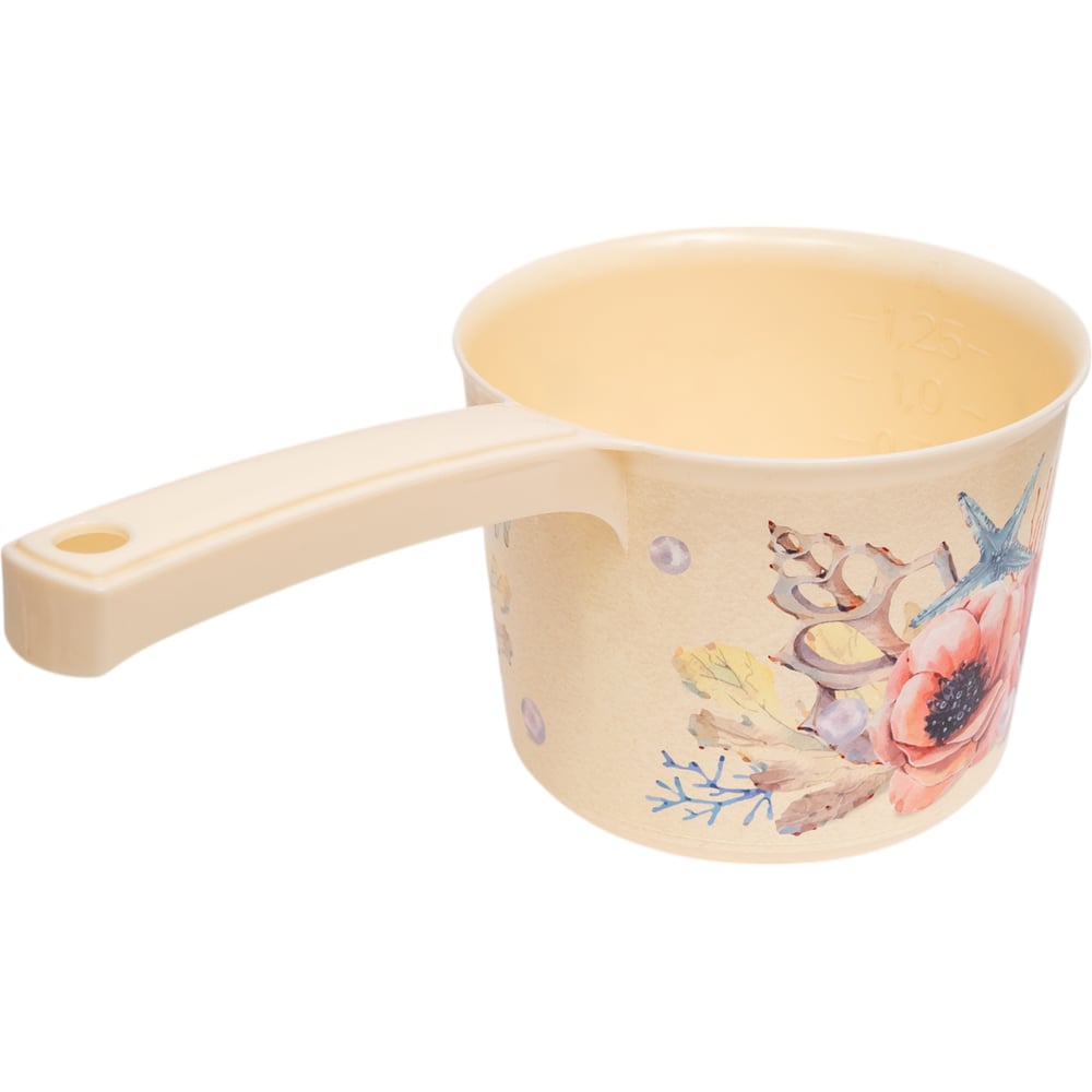Габариты без упаковки 297х144х152 мм Длина 297 мм Объем 1.5 л Цвет бежевый Вес нетто 0.124 кг Материал ручки пищевой полипропилен Материал ковша пищевой полипропилен