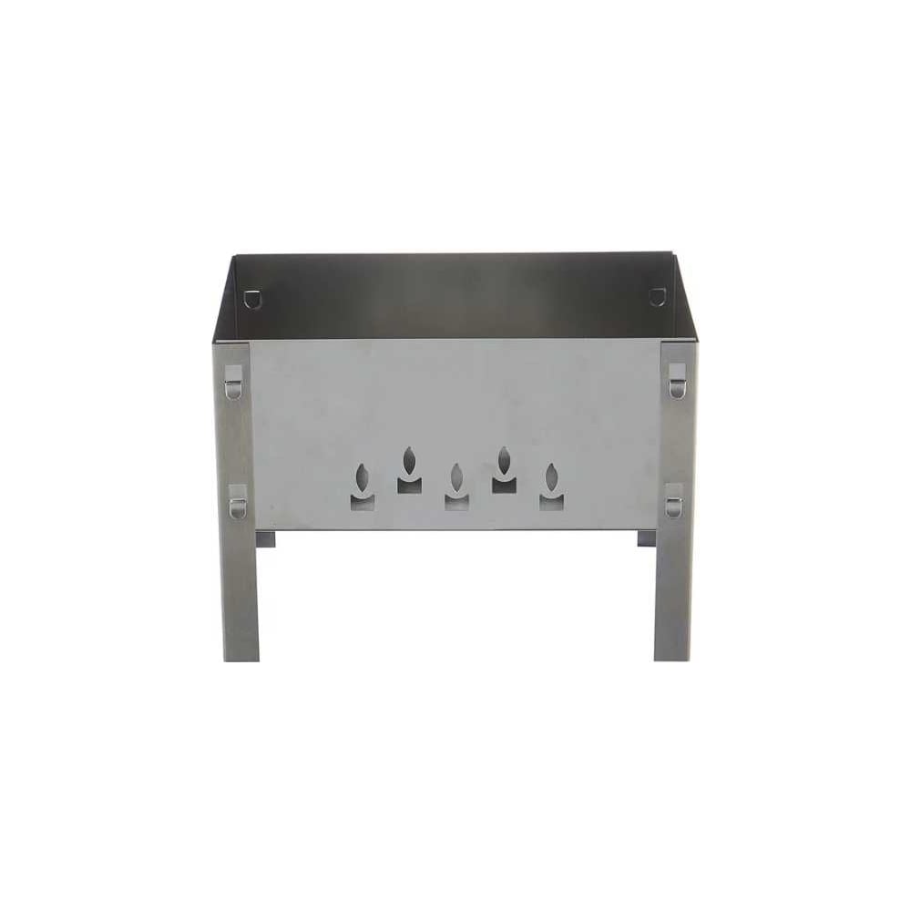 Покрытие нет Цвет серебристый Вид переносной Материал корпуса сталь Крышка нет Количество полок 0 шт Вертикальный да Колесики нет Решетка в комплекте нет Кованый нет Столик нет Держатель под казан нет Вертел нет Шампуры нет Раздувайка нет Кочерга нет Разборный есть