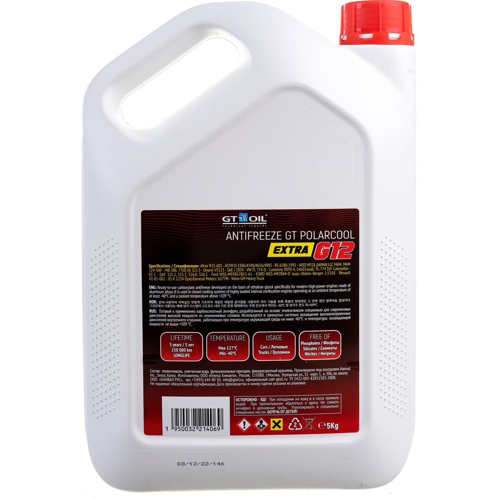 Антифриз GT OIL Polarcool Extra G12 красный, 5 кг 1950032214069