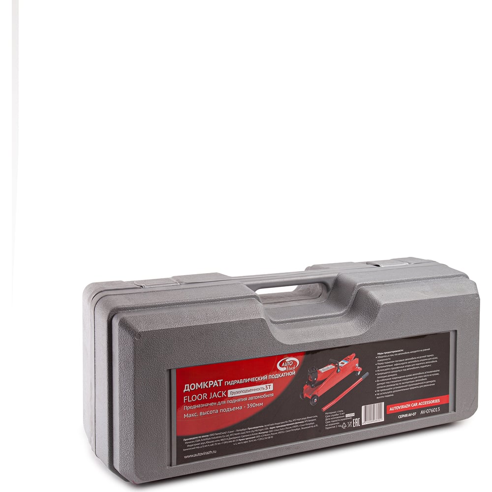 Гидравлический подкатной домкрат 3т +кейс /красный//подъем 390 мм AUTOVIRAZH AV-076013