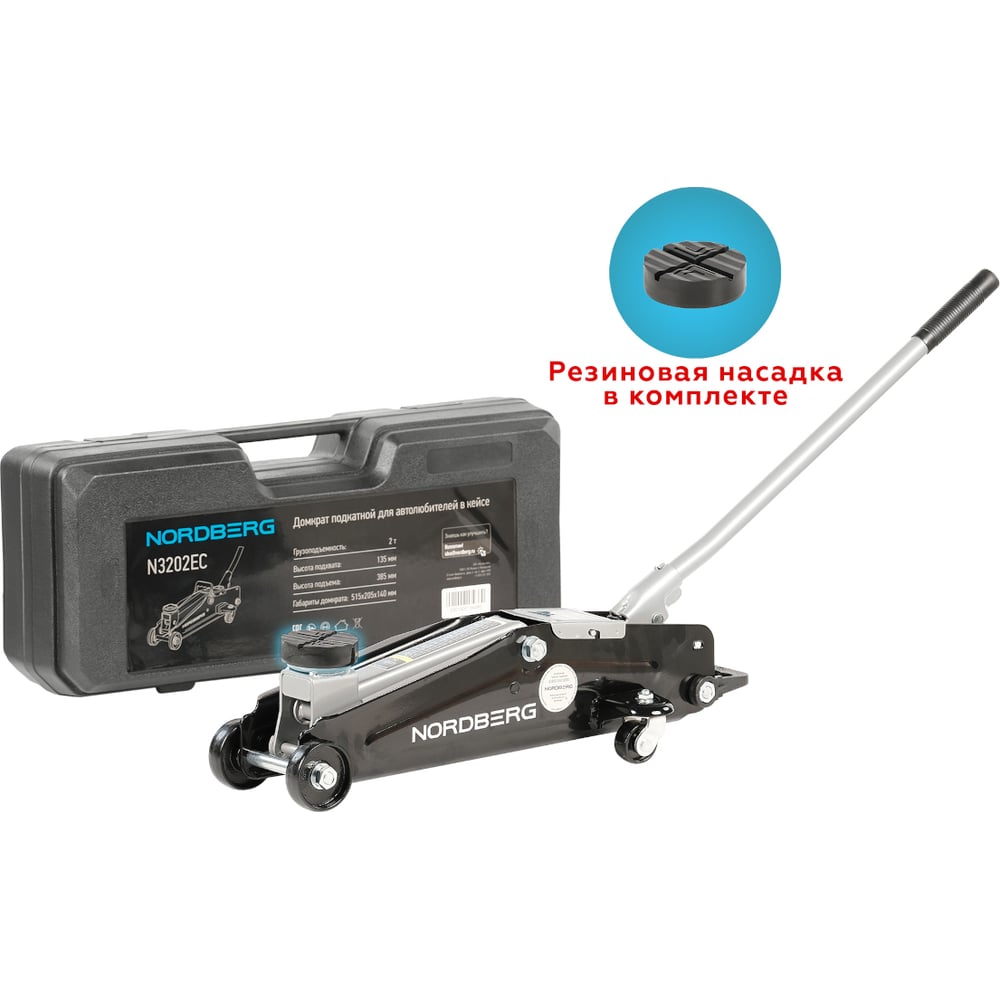 Подкатной домкрат для автолюбителя в кейсе (2 т) NORDBERG N3202EС