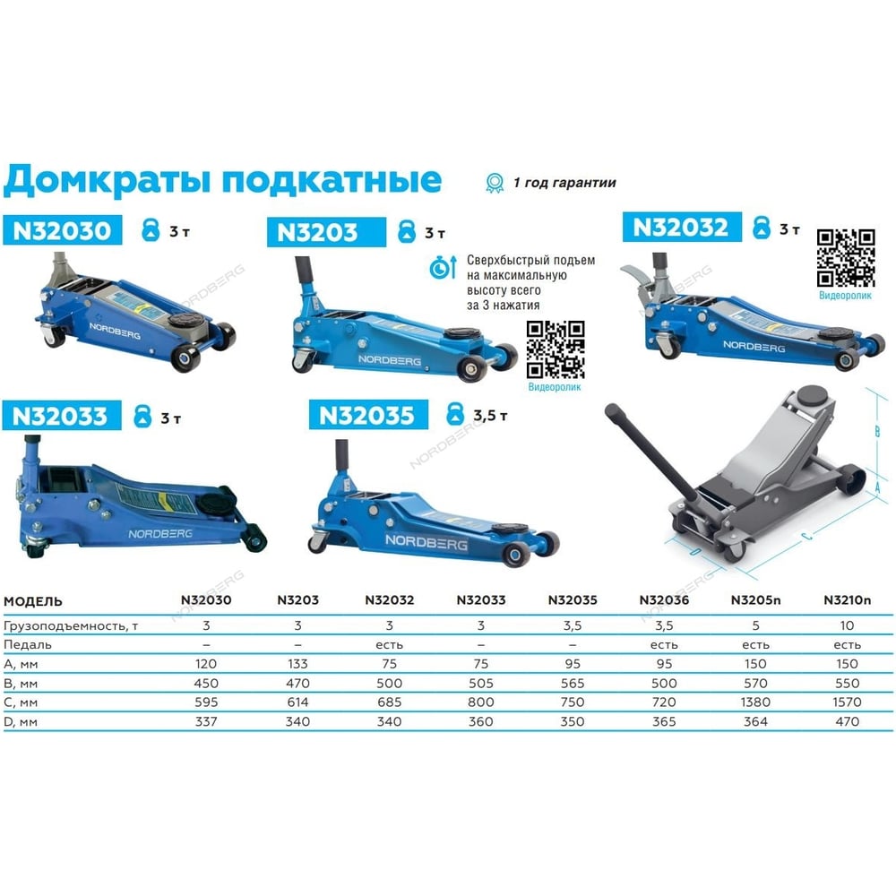 Nordberg домкрат n32032 супернизкий подкатной 3 тонн, h=75-500 мм n32032