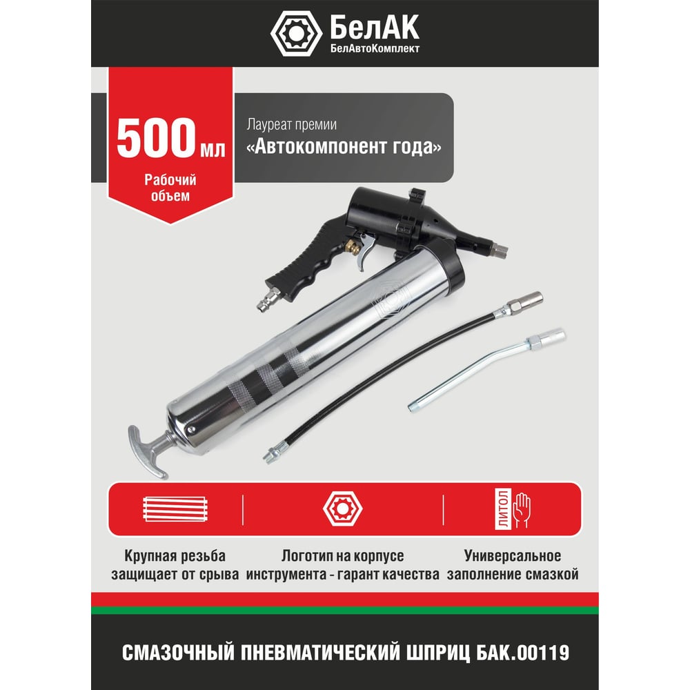 Пневматический смазочный шприц БелАК 500 мл БАК.00119