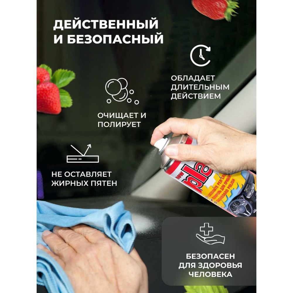 Объем 0.75 л Вид полироль Аромат Клубника Класс товара Бытовой Для резины/пластика да Для сплавов нет Для кожи нет Для приборной панели да Назначение для ухода за салоном Способ нанесения ручной Вид упаковки спрей/аэрозоль Вид товара аэрозоль С воском нет Степень абразивности без абразива