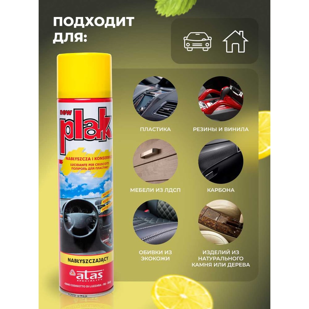 Полироль салона Atas PLAK 400 мл аэр., Лимон 5120