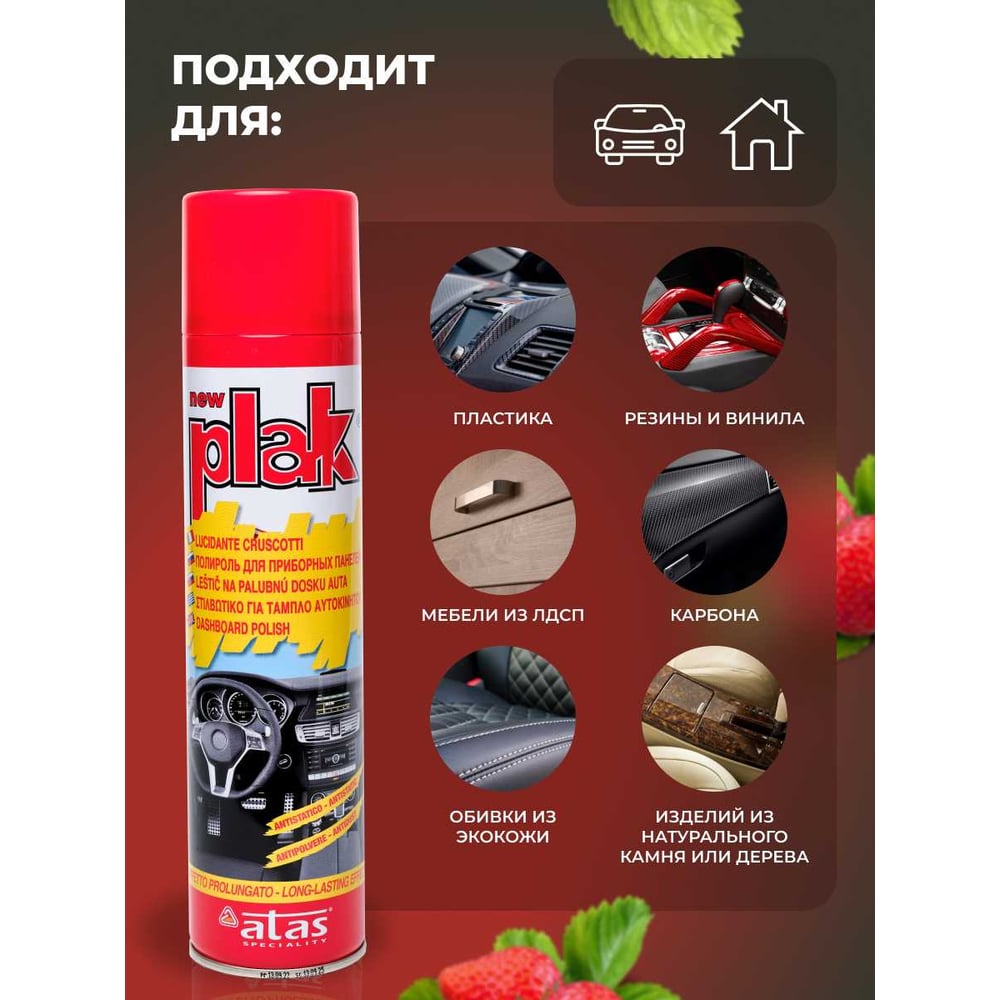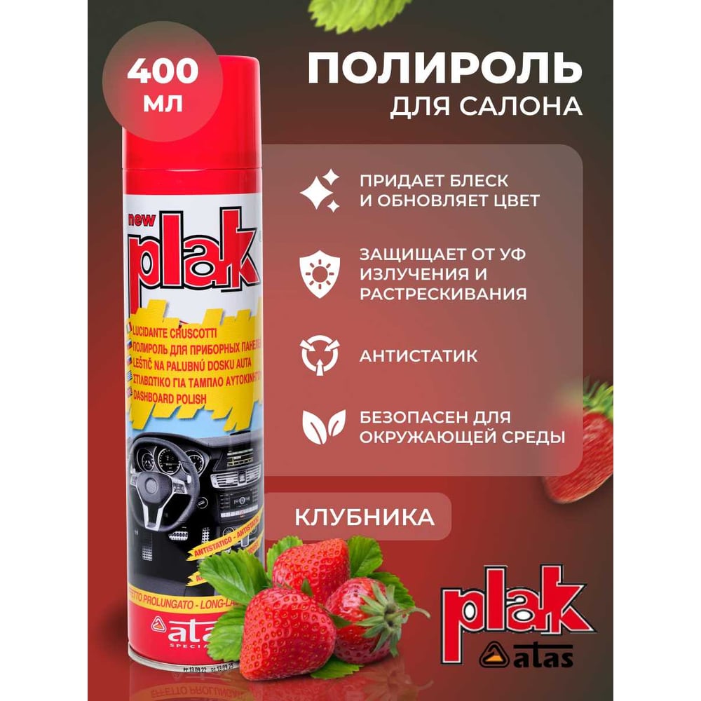 Полироль салона Atas PLAK 400 мл аэр., Клубника 5121