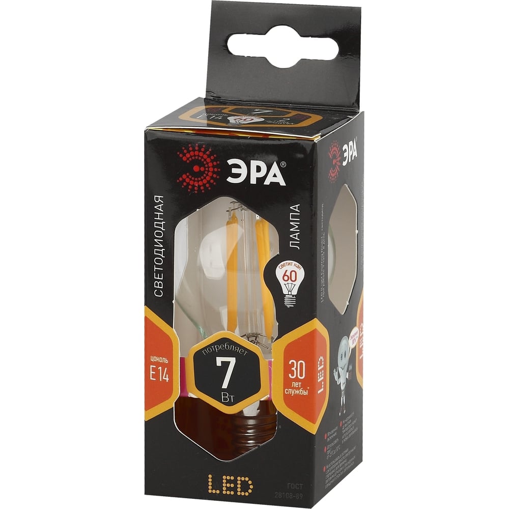 Светодиодная лампа ЭРА F-LED P45-7W-827-E14 филамент, шар, теплый Б0027946