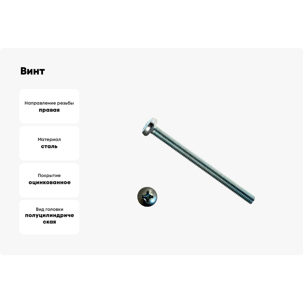 Винт КРЕП-КОМП DIN 7985, полуцилиндрическая головка, цинк, 5x100, 800 шт. вц5100