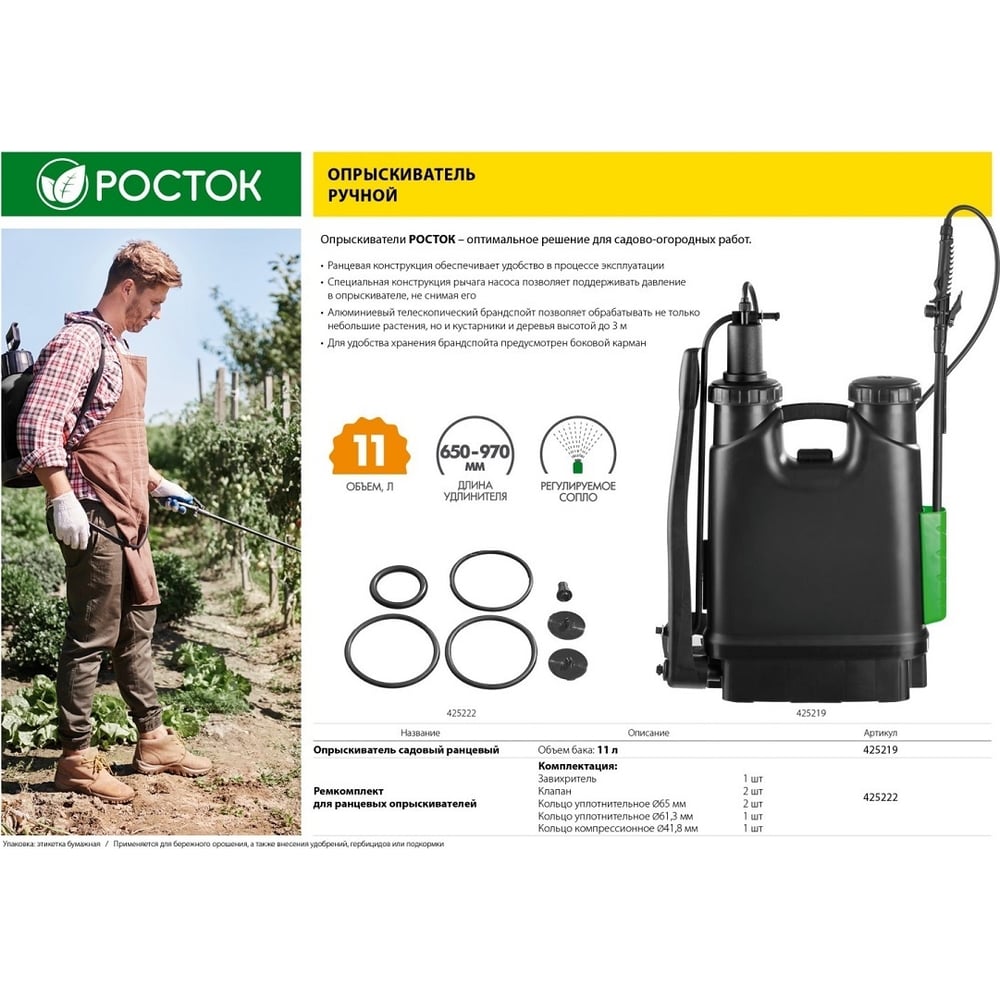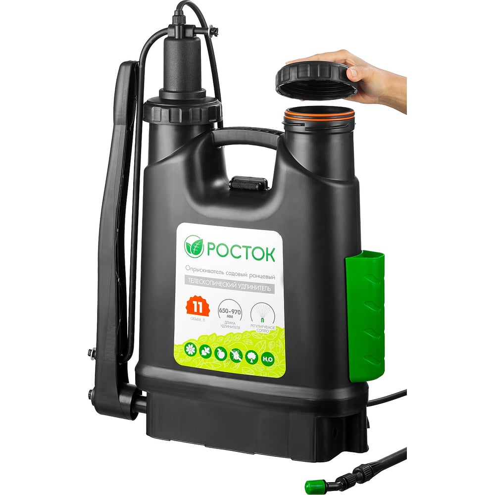 Росток опрыскиватель садовый , ранцевый, телескопический удлинитель, 11л 425219