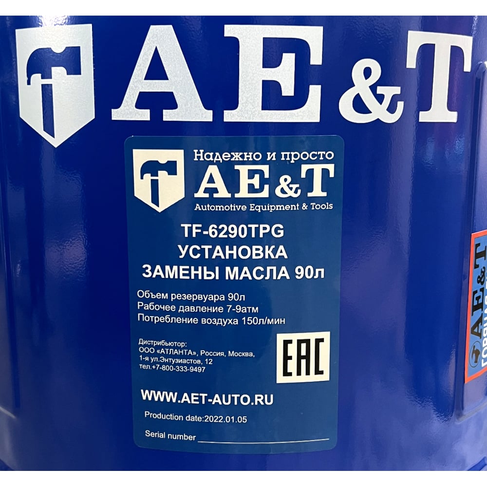 Установка замены масла AE&T 90 л, щупы+предкамера+воронка TF-6290TPG