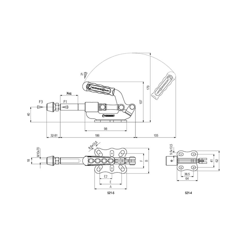 Зажим плунжерный с горизонтальным кронштейном KUKAMET, усилие 459 кг 521-4-Q18