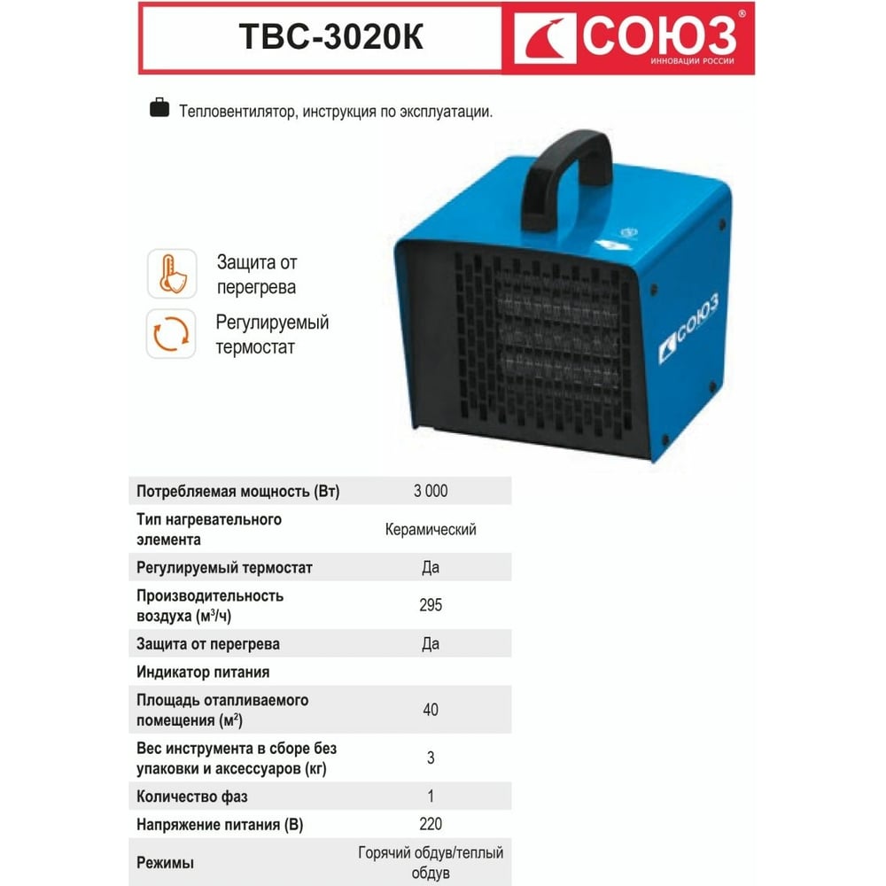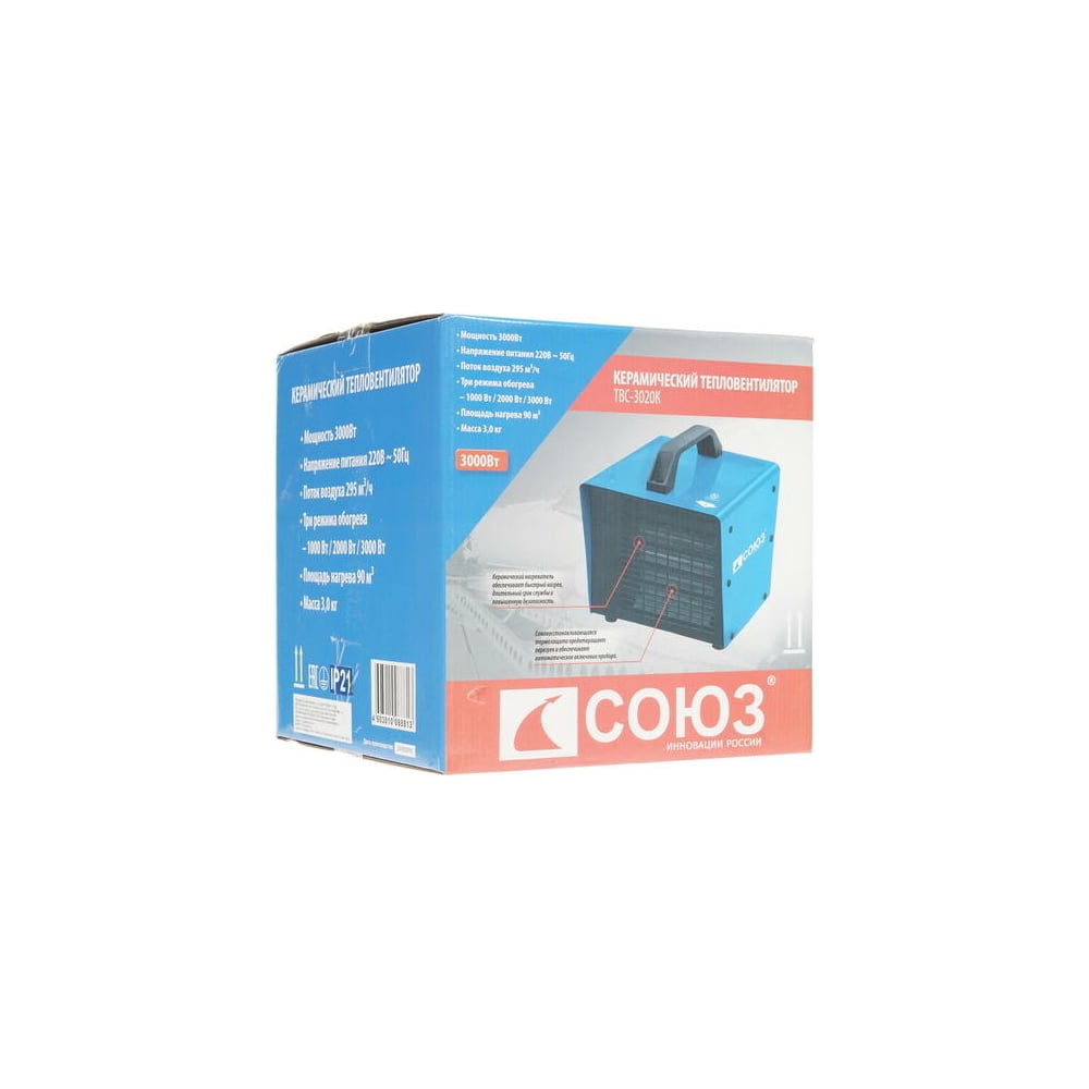 Керамический тепловентилятор СОЮЗ ТВС-3020К, 3кВт
