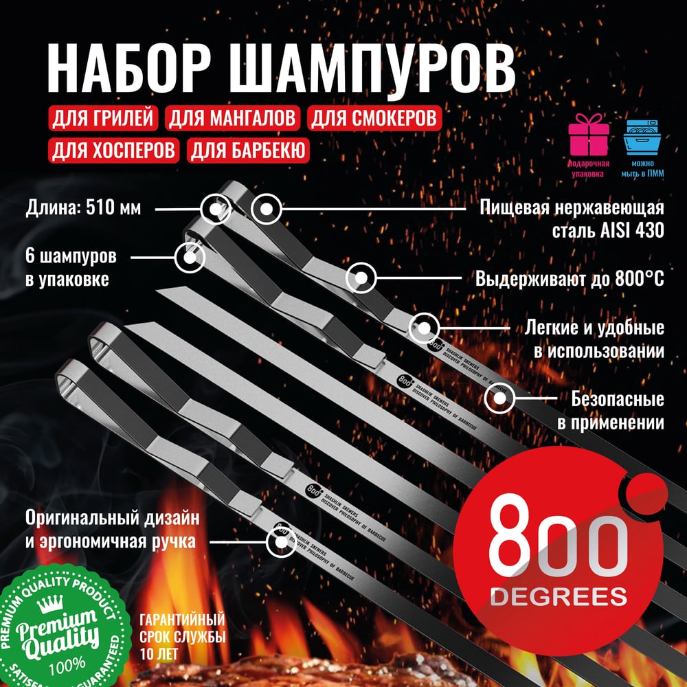 Набор шампуров шашлычных 800 Degrees 6 Shashlik Skewers 800DGR-TLS020
