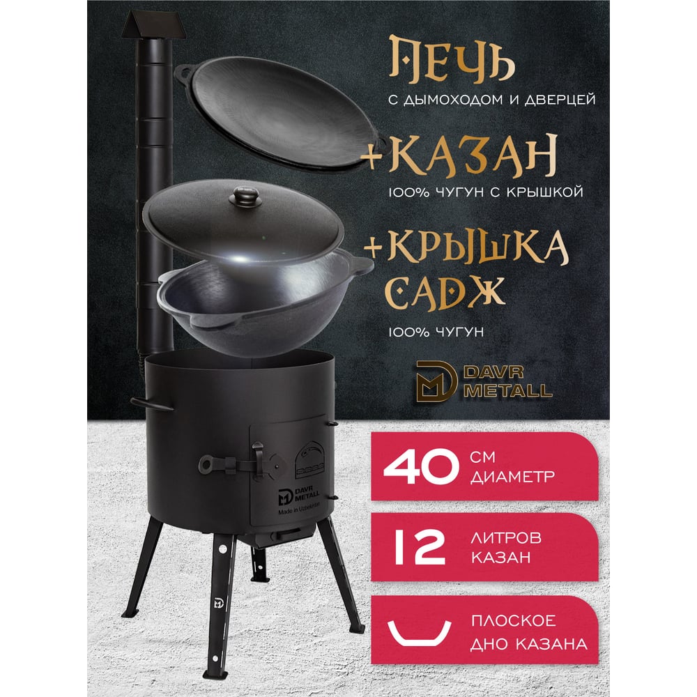 Печь + казан + крышка садж Davr Metall (12 литров плоское дно) печь+казан12(плоск)+садж