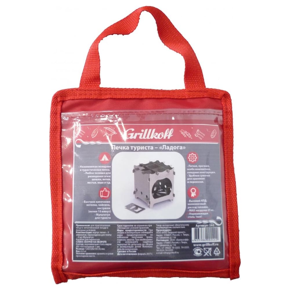Печка-щепочница Grillkoff ладога из нержавеющей стали 1 мм в сумке, с мультитулом 262