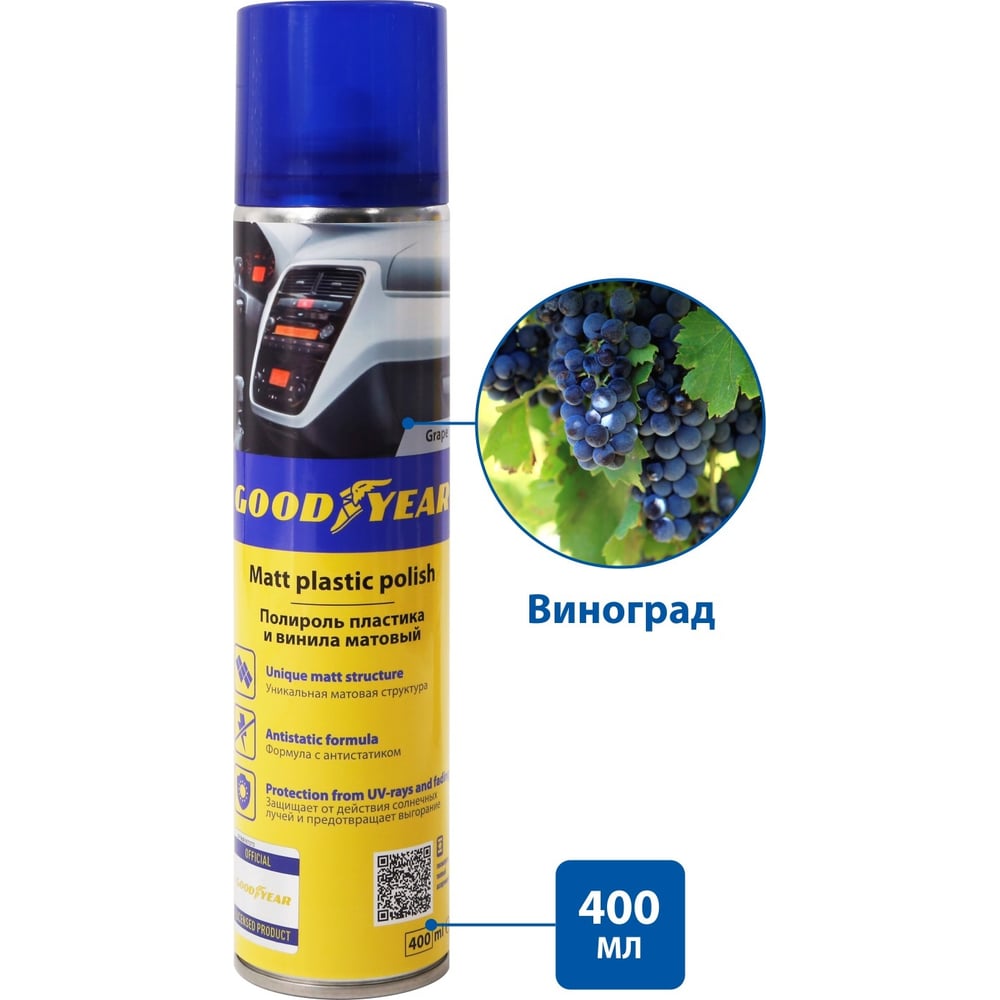 Полироль пластика Goodyear матовый, виноград (Grape), аэрозоль 400 мл GY000794