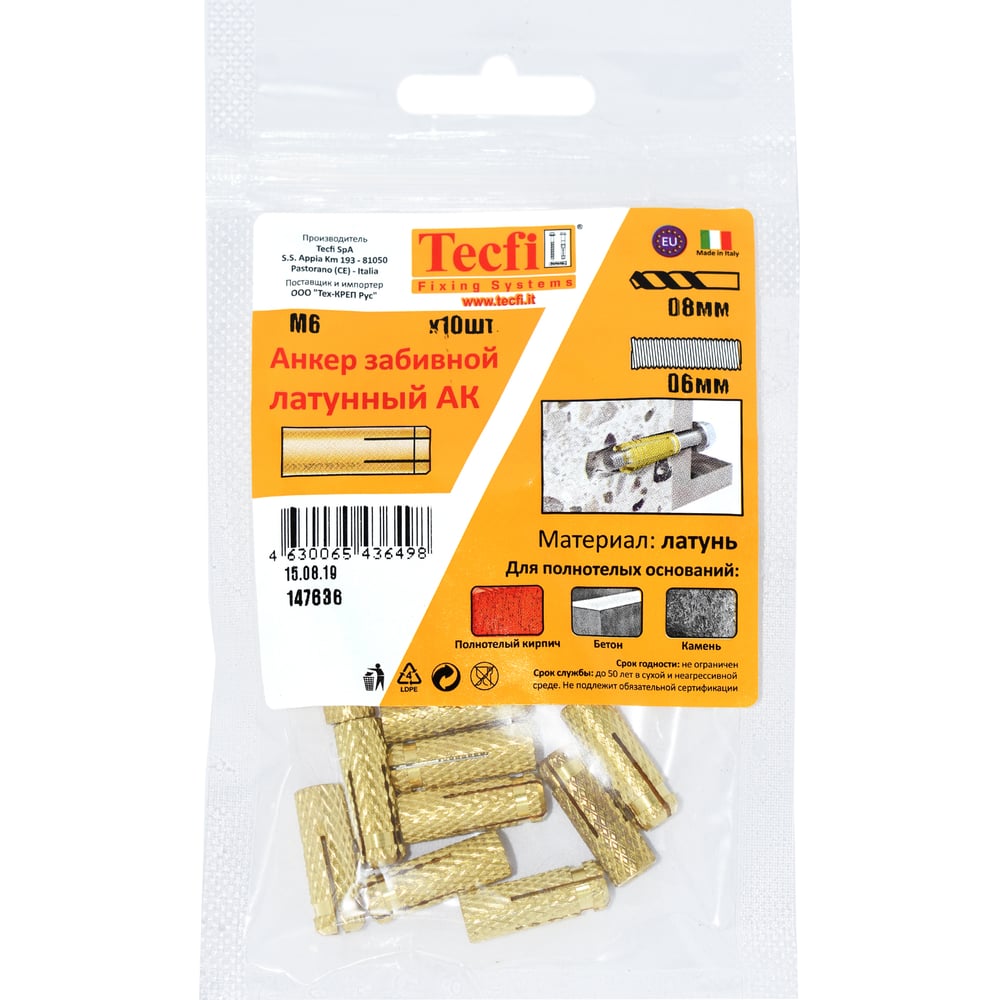 Забивной латунный анкер Tecfi M6 10 шт 147636