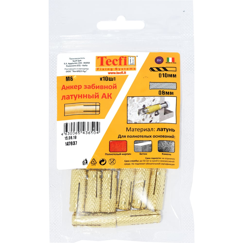 Забивной латунный анкер Tecfi M8 10 шт 147637