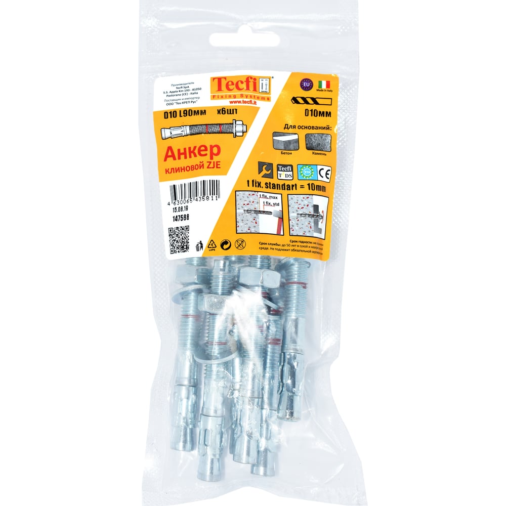 Клиновой анкер Tecfi ZJE ZN 10x90, 6 шт. 147568
