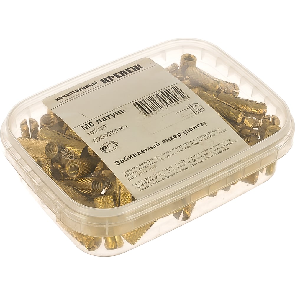 Забиваемый анкер Качественный Крепеж цанга М 6, латунь 100 шт 0200070 КЧ