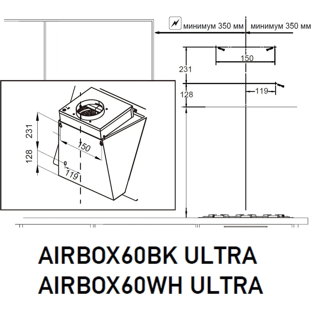 | Мин высота над газовой плитой | 750 мм |
