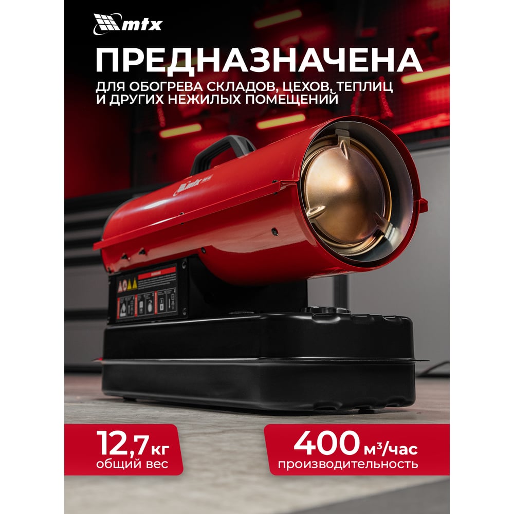 Дизельная тепловая пушка MTX DHB-10i, 10 кВт, 400 м3/ч, прямой нагрев, термостат 98904