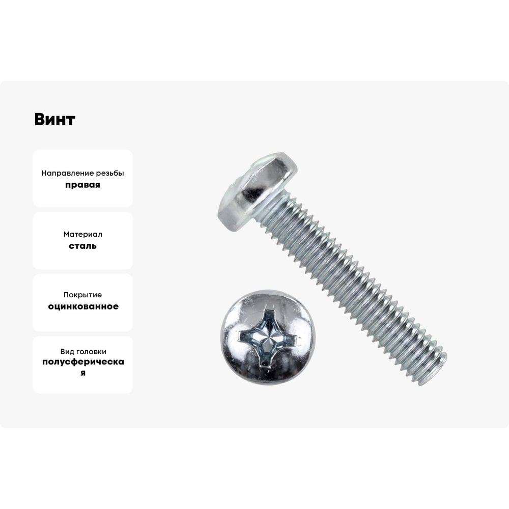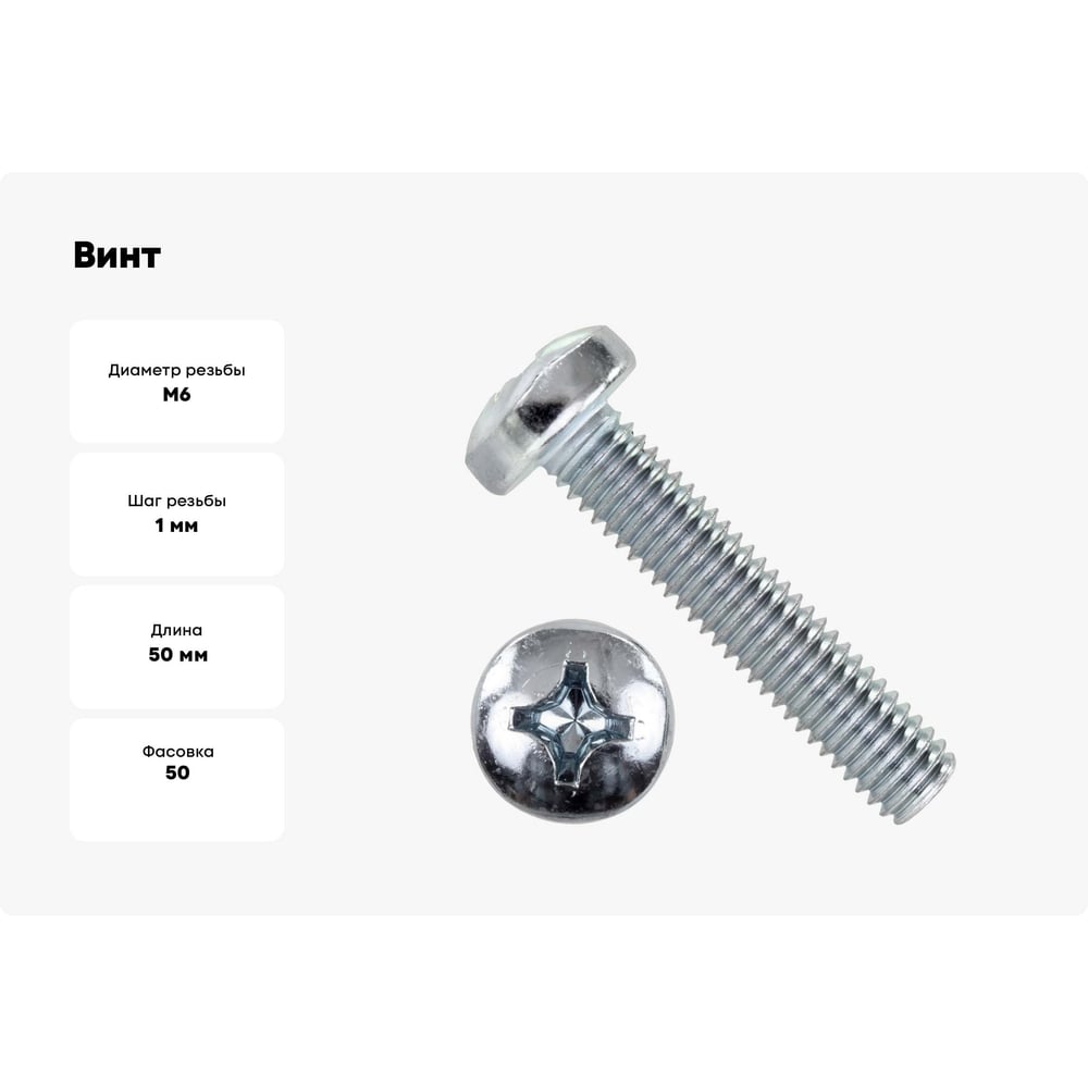 Винт BEFAST DIN 7985, полусфера, полная резьба, покрытие цинк, 6х50, 50 шт. 7985F0605050S