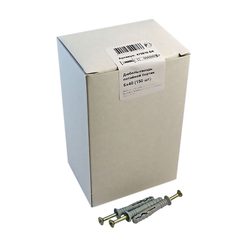 Дюбель-гвоздь с потайным бортиком крепежная техника 6х40, 150 шт 470810 БК