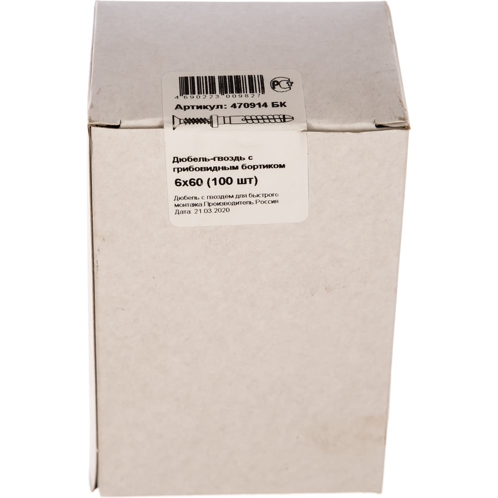 Дюбель-гвоздь с грибовидным бортиком Крепежная техника 6х60 мм, 100 шт. 470914 БК
