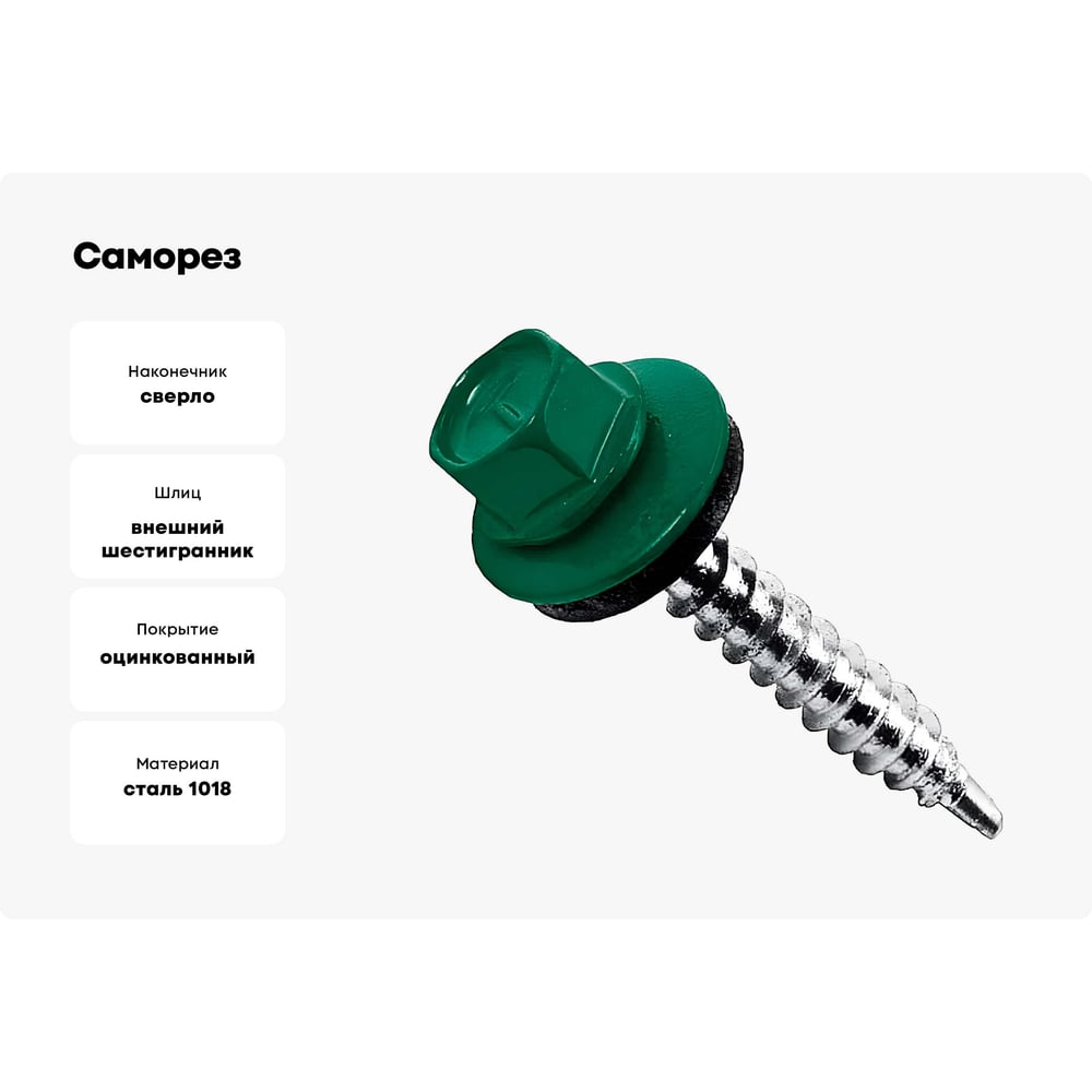 Саморез с шайбой epdm BEFAST уменьшенное сверло, окрашенный ral 6005 4.8x50 мм, 200 шт. C60054850200S