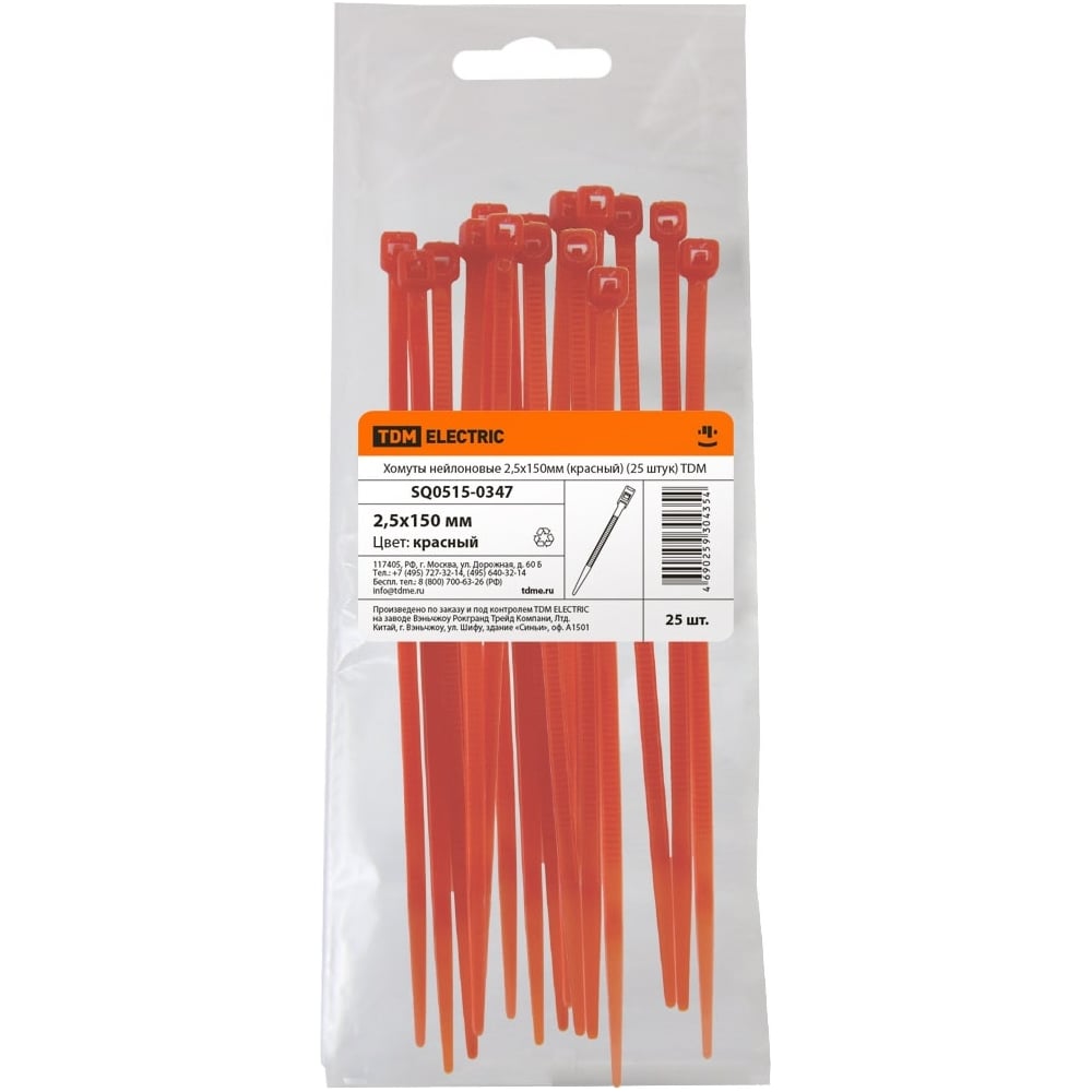 Нейлоновые хомуты TDM ELECTRIC 2,5х150 мм, красный, 25 штук SQ0515-0347